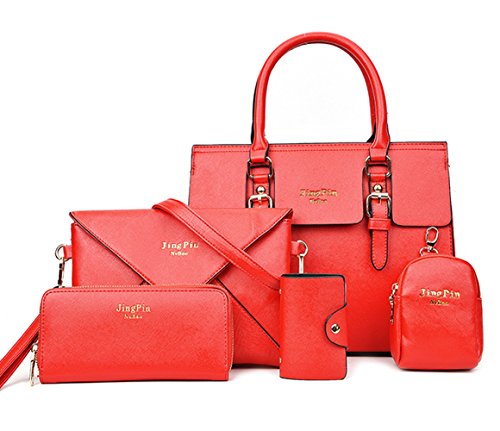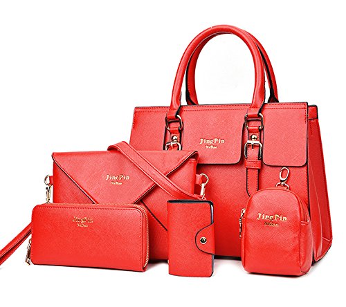 | HX Women 5 PCS Set Handbags PU Leather Crossbodybag Purse Set |