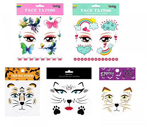 GGSELL GGSELL tattoo 6pcs mixes kids animal face temporary tattoos in one packages,including rainbow,clould,butterflies,flowers,tiger face tattoos