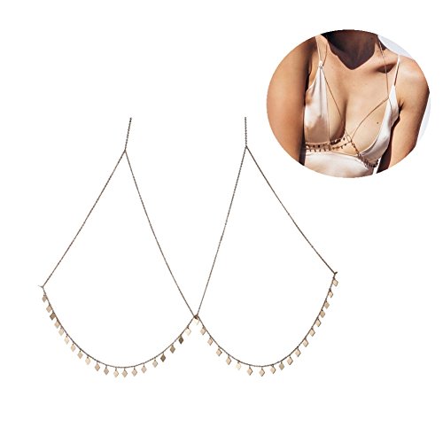 Auch Fashion Sexy Bikini Body Chain, Sexy Bikini Bralette Paillettes Chain, Jewelry Bikini Bra Chain for Women - Gold