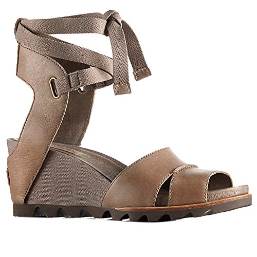 Binding : Apparel Product Description FEATURES of the Sorel Women's Joanie Wrap Sandal Upper: Full grain and suede combination Cotton webbing ankle strap Pigskin lining Footbed: Pigskin footbed Midsole: Molded PU-BPU wedge Outsole: Molded rubber outsole 0