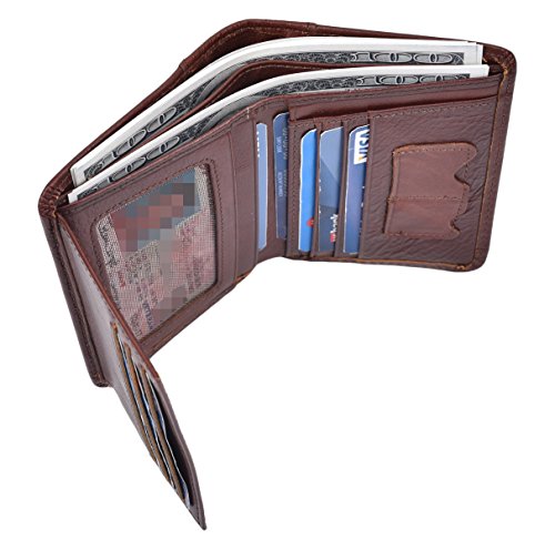 Version : The wallet is made of high quality leather, and it is wear-resistant and durable with skilled line finish. It is classic and stylish, suitable for various occasions, and it is easy for carrying. Besides, it is large enough, practical and perfect for daily use. Dimensions : L*W*H: 12*9.5*1.5cm, it is ultra slim and convenient to put it into your pockets of clothes, or put it into your handbags, backpacks or other bags. Construction : There are 6 card slots, enough space for cards, one ID display window to hold your ID card, or driver license, two full compartments that can hold some cash comfortably and 2 SIM card slots to hold your SIM cards, meeting your needs for daily use of both cards and cash. 0 |
