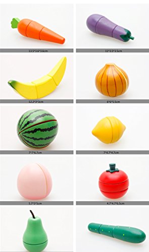 -. Feature : VolksRose finishes are all non-toxic, child safe, and of the highest quality. Made from sustainable rubber wood and coated with a non-toxic finish, all colors are made from vegetable dye. Durable construction and strong materials ensures that this toy will stand up to years of play. / Play food set with wooden knife. Fruit pieces slice apart. Beautifully painted pieces feature realistic details. The perfect accessory to enhance playtime experiences. Great addition to any Kitchen or playhouse. / Self-stick tabs make a satisfying "crunch" when sliced. Self-stick tabs hold pieces together, then "slice" apart. Perfect for pretend play and introducing concepts of whole and part. A playful introduction to fractions, counting, colors, and more. / Invite early dramatic play, build vocabulary, model mealtime routines, and more with the most familiar food to toddlers. / Imaginative play develops from familiar objects and situations. Use this set to act out dinner traditions or routines. Recommended for ages 3 and up. Product Measures: 15 x 12.6 x 3.1 in (38 x 32 x 8 cm). Product Weight: Approximately 3.3 lb (1.6 kg).