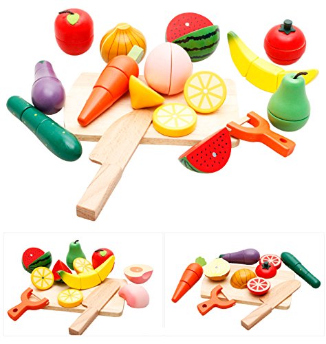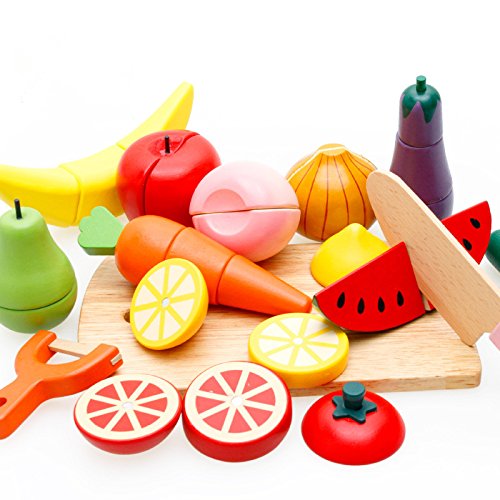 -. Title : VolksRose Wooden Cutting Fruit & Vegetable Set - Children Toddler Pretend Wood Play Food Set Toys for Child 3 Year and Up - Perfect Christmas Gift for Your Kids