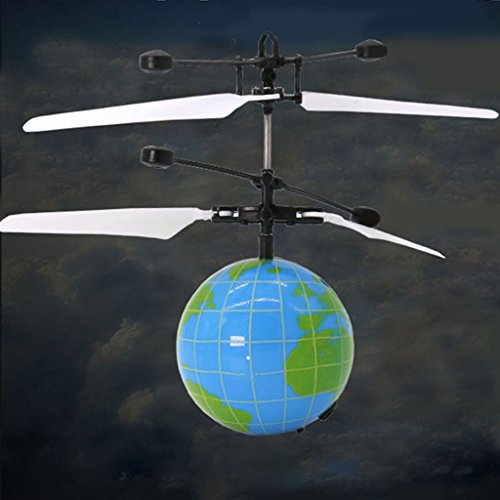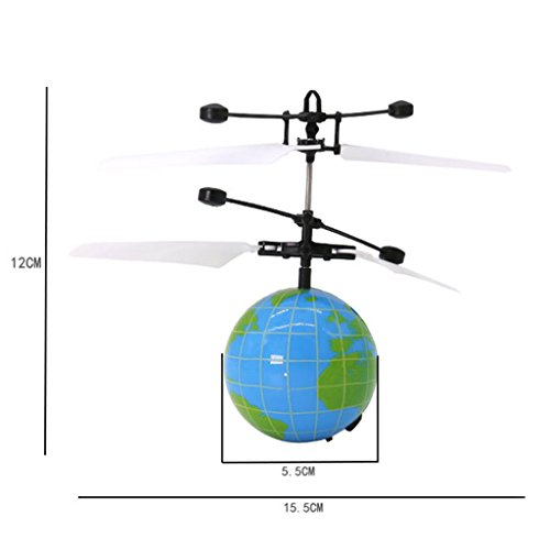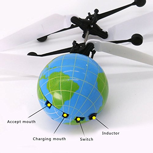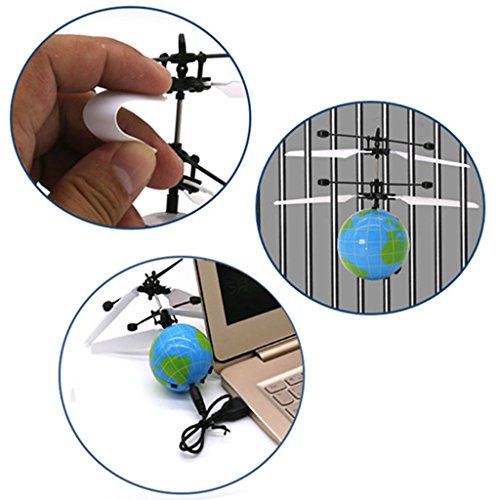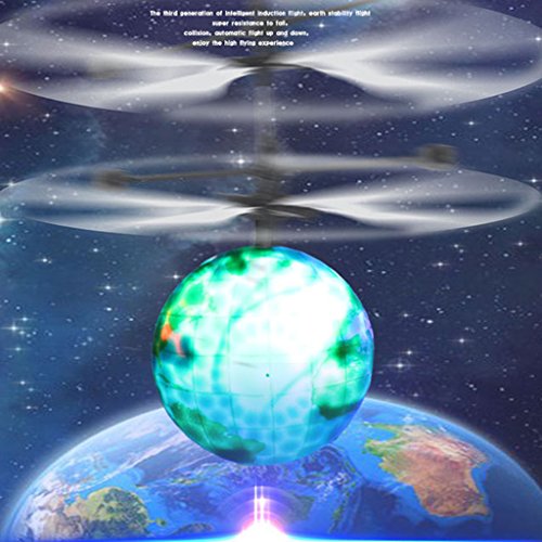Studio : CHONE Publisher : CHONE Binding : Toy Product Description It is like a toy helicopter but instead of the usual helicopter cabin and body it features a clear glass ball. When you turn on it, it will emitting a brilliant light, very beautiful! It is motion-sensitive so it detects nearby objects and is programmed moves away from them. The idea is that you launch it and then hold your hand underneath it to keep it in the air. It continuously detects your hand and moves away from it. You or your kids, families will enjoy this amusing and fantastic process. The ball contains the battery and motor and also some flashing LED lights. When you turn it on the lights flash brightly. It has great visual appeal for any child. It looks fantastic at night in a darkened room. It is also very therapeutic if you are stressed out after a hard day; especially at night when the lights show up brightly. Package includes: 1x Sensing Aircraft Toy Fly ball 1x USB cable(other accessories demo in the picture is not included.)