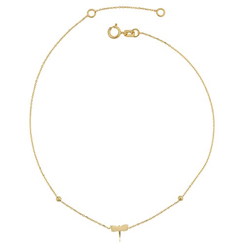 -. Title : 14k Yellow Gold Dragonfly Adjustable Length Anklet (fits 9" or 10")