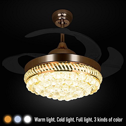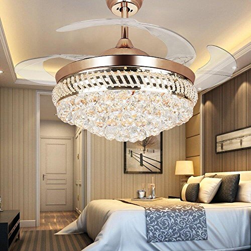 PROFESSIONAL ELECTRICIAN•Top Rated Ceiling Fans Will Bring Your Living Room Nice Feel. Hardware Lamp Frame Base and Crystal Drop Hanging for Lampshade. 4 Acrylic Blades Pull Back To