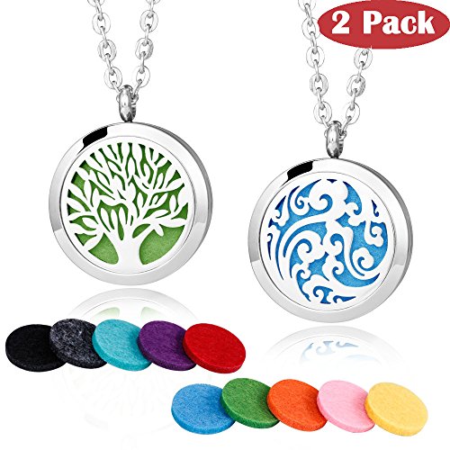 - SAVE YOUR MONEY - 2PCS diffuser necklace with different pattern! The most affordable set! Superior quality at good price! Two styles pendant locket, alternate use. 10 different color refill pads.