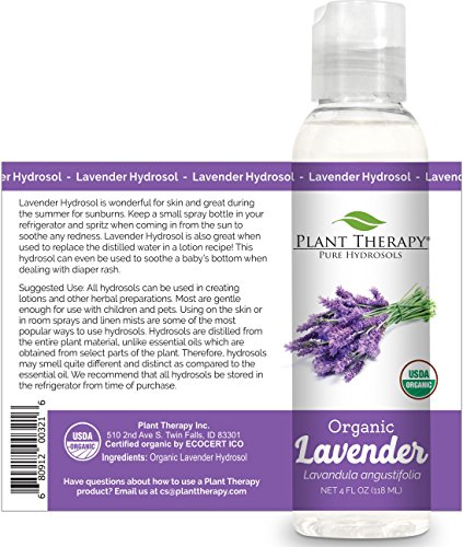 Plant Therapy Organic Lavender Hydrosol. (Flower Water, Floral Water, Hydrolats, Distillates) Bi-Product of Essential Oils. 4 oz.