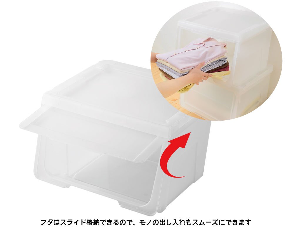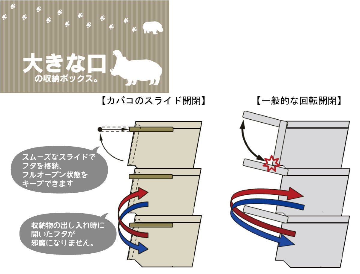 The lid can be stored in the main body with a smooth sliding type! Moreover, since it can keep the full open state, the lid can get in and out smoothly without getting in the way!