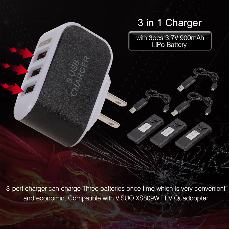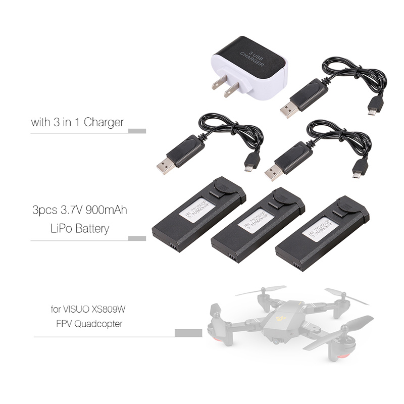 High quality 3.7V 900mAh LiPo battery for VISUO XS809W, XS809C, XS809 FPV quadcopter.