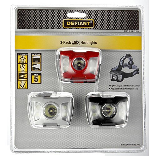 3pk Defiant 50 Lumen LED Headlamp Flashlights, 9 AAA Baterries Included