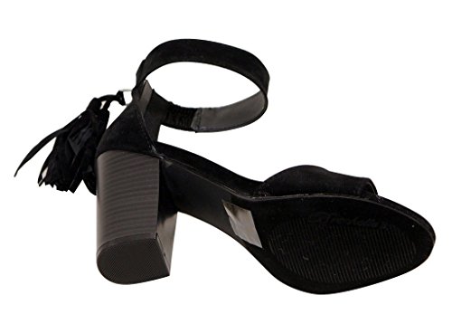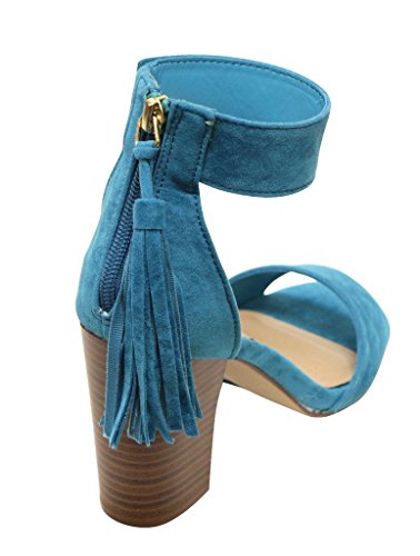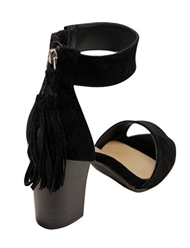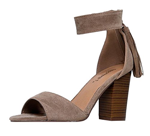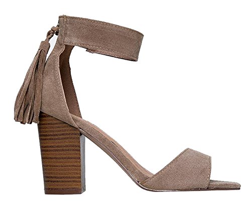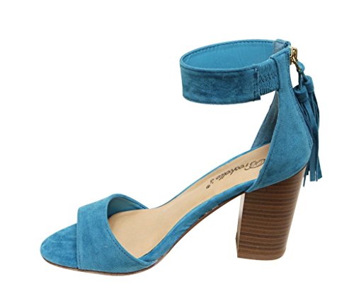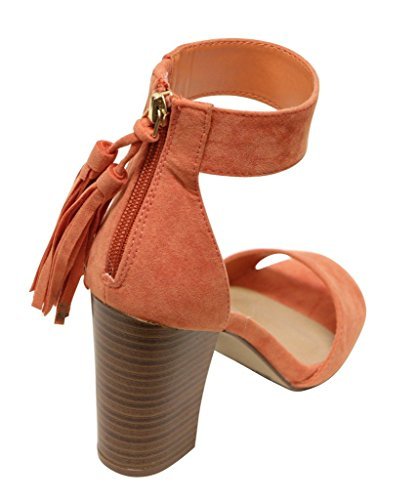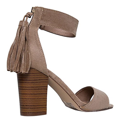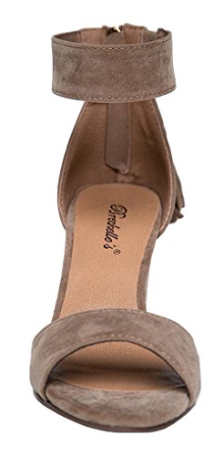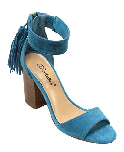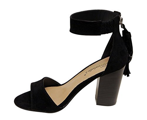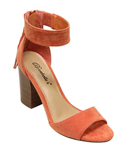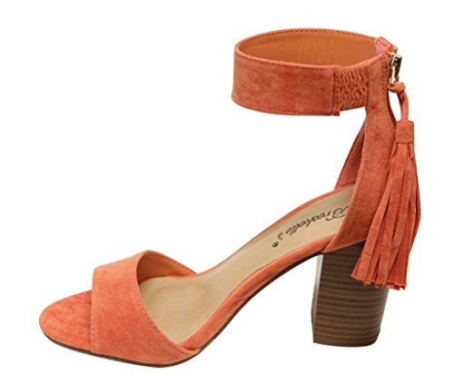 Breckelles Pensee-32 women's d'orsay open toe chunky heel fringe tassel zip closure ankle strap...