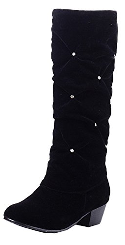 Binding : Apparel Product Description A pair of suitable boots means a lot to a lady. It can not only prevent her feet from the harm from the whether, also, it can help she well display her vintage and feminine temperament. However, have you get prepared to welcome the cool weather? You need this pair of boots. With this pair of boots with block heel you don't need to worry about that you would get tired easily. Just as you can see, this pair of boots has mid heel which make them wears very comfortable and can well display your charm and femininity. And its lug sole can well antiskid, you don't need to worry when you step on the slippery street. What's more, it has one of the most popular elements--rhinestones which is fashion and vivid, can well display your charm and individuality. Still hesitate? Just let them share your life with ease. 0