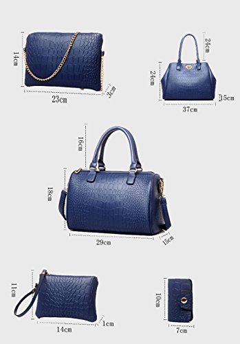 -. Feature : High quality PU leather material, waterproof and comfortable hand. / Size: Handbag: 37cm*15cm*24cm Boston bag:29cm*15cm*18cm, shoulder bag: 23cm*3cm*14cm, small purse: 14cm*1cm*11cm. / This gorgeous elegant bags comes with 5pcs sets. / Have inside pocket with zipper, certificate bag, cellphone bag and the shoulder strap can be removable and adjustable. / Easily carry your mobile phone, wallet, cosmetic, IPAD, umbrella and other daily things.