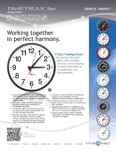 - Feature : Receives dependable time signal every 24 hours from Pyramid TimeTrax Sync Wireless RF Transmitter (9T1WI sold separately) / Uses maintenance-free long lasting 3.6V Lithium C-size battery (42224 sold separately) / Standard 12-Hour clock face / Low profile, ABS black frame with non-glare shatterproof lens for easy viewing and durability / Automatically adjusts for Daylight Saving Time and resets for power outages / Made in USA