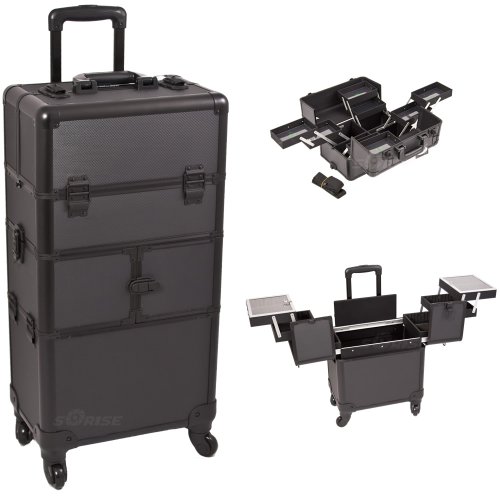 - 2-in-1 professional trolley makeup case 360 degree rolling wheel system