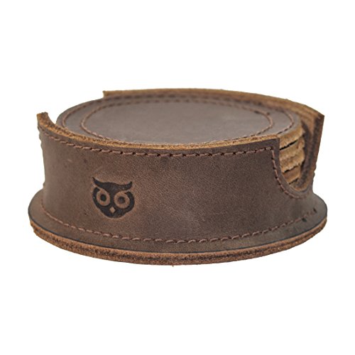 -. Feature : PERFECT ADDITION TO YOUR COFFEE TABLE: These beautifully handcrafted and hand stitched Thick Leather Coasters come in a pack of six, perfect for your coffee table, kitchen table, wherever you take your coffee or tea. / HANDCRAFTED AND HAND STITCHED USING DURABLE FULL GRAIN LEATHER: The Leather Coasters are handcrafted, finely stitched using only the best material, namely 100% Full Grain Leather. The coaster holder is fire branded with our Owl emblem that will last a lifetime, while the leather will attain a unique patina over time and usage. / PROTECT YOUR WOODEN SURFACES: These attractive, Full Grain Leather coasters provide excellent protection to your wooden surfaces. No more water marks or coffee cup rings on your favorite Mahogany. / HOT & COLD DRINKS: The sturdy, durable Full Grain Leather ensures a long lasting life to your coffee table and the coasters themselves. Protects against intense heat from hot drinks, and condensation from cold ones. / FEATURES A COASTER HOLDER FOR EASY STORAGE: The coasters come in an attractive, Full Grain Leather holder that offer an elegant yet unassuming home, making for easy storage when the coasters are not in use.