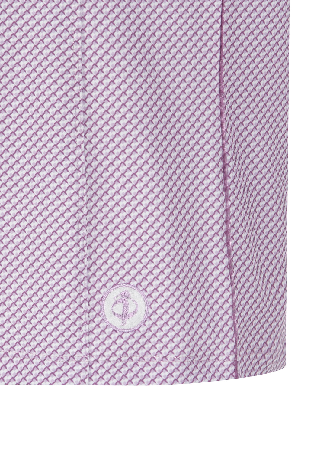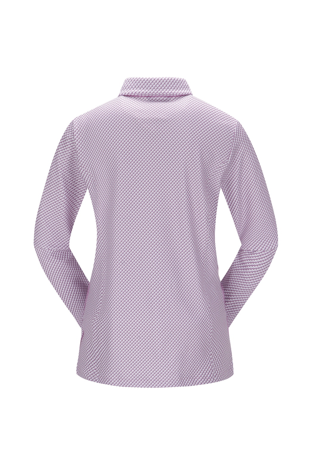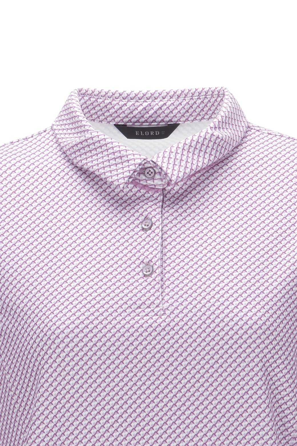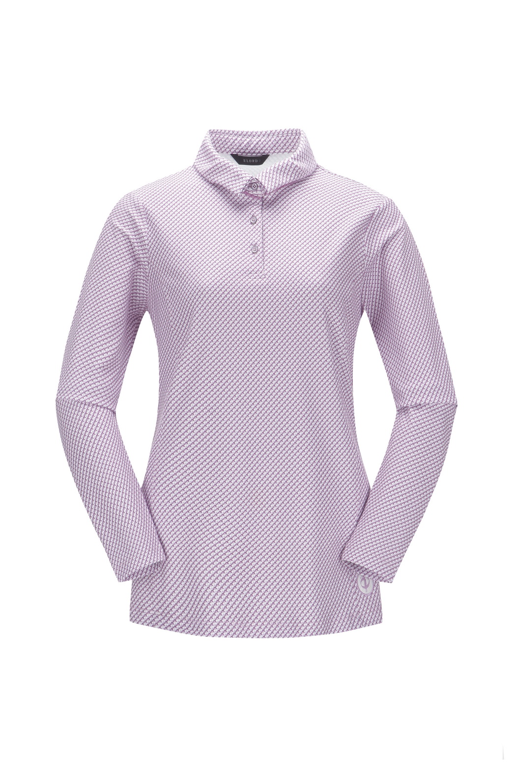 - 올오버 프린트 텍스쳐로 포인트를 준 여성 티셔츠.