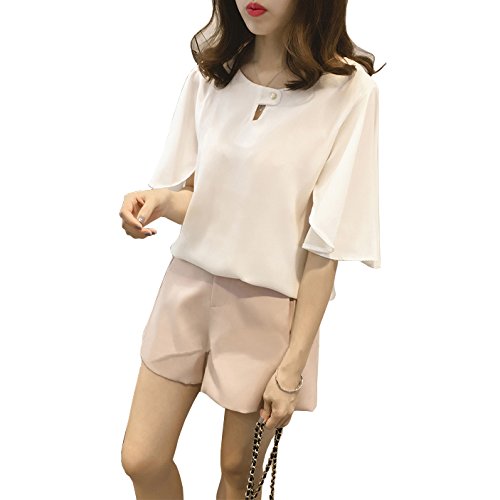 -. Title : 半袖 五分袖 レディース トップス チュニック きれいめ ピンク ホワイト グレー M L LL 3L 4L 5L 大きいサイズ