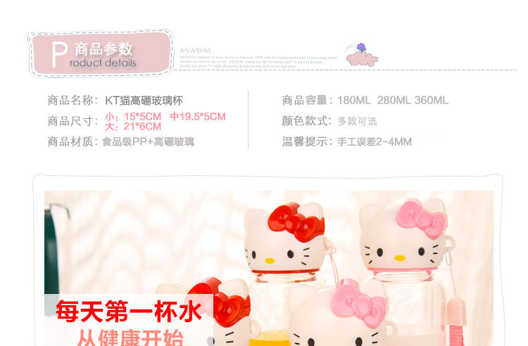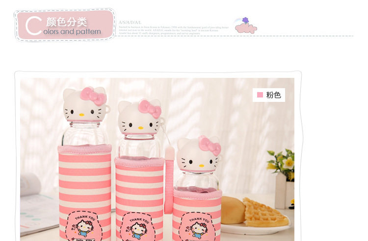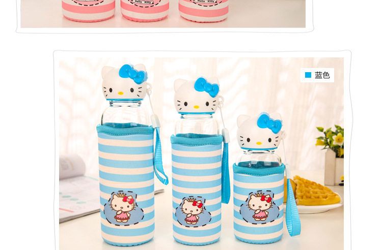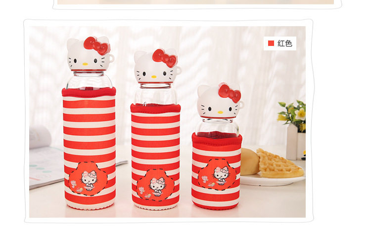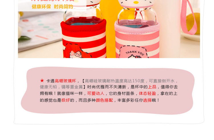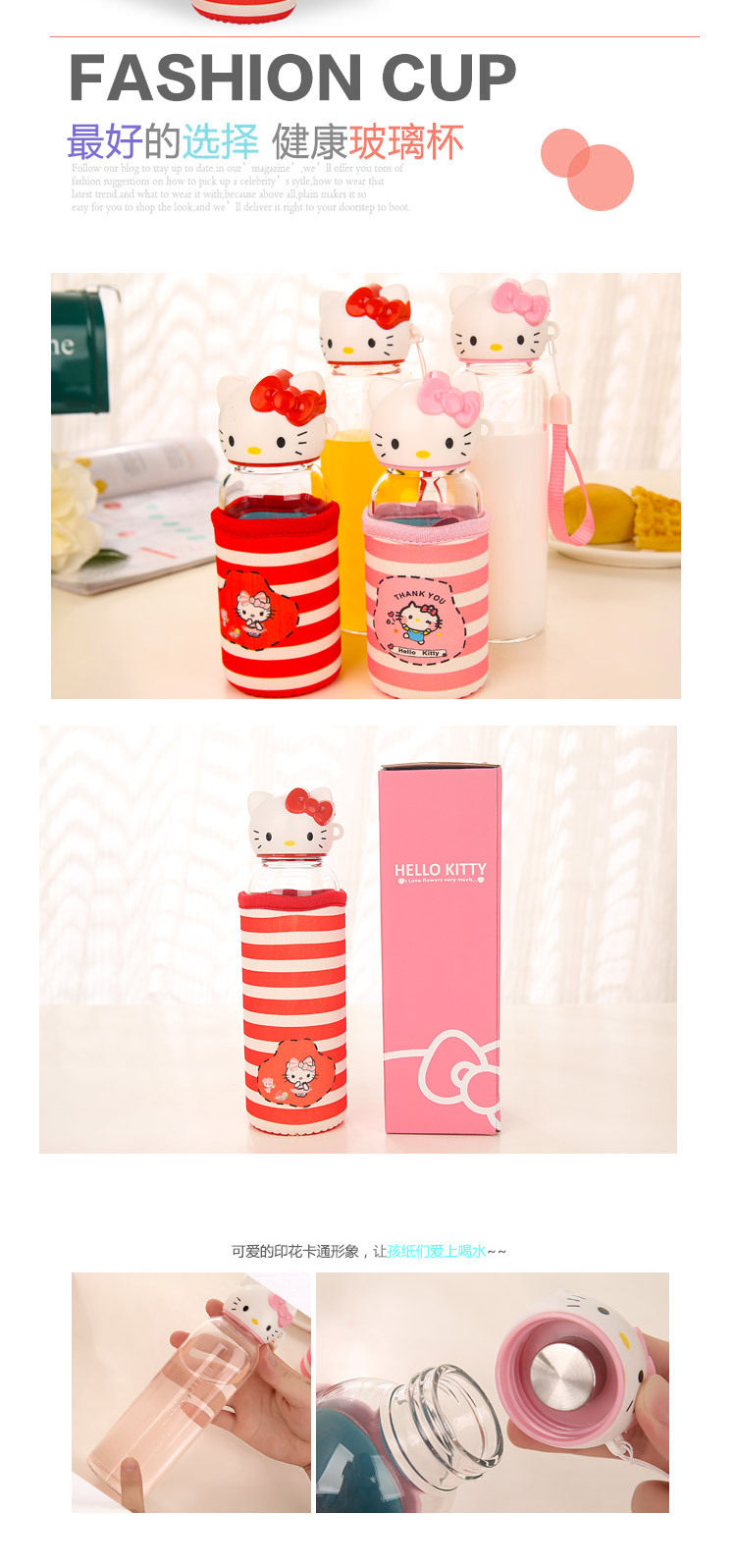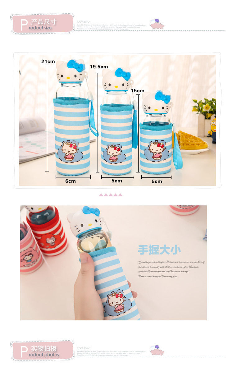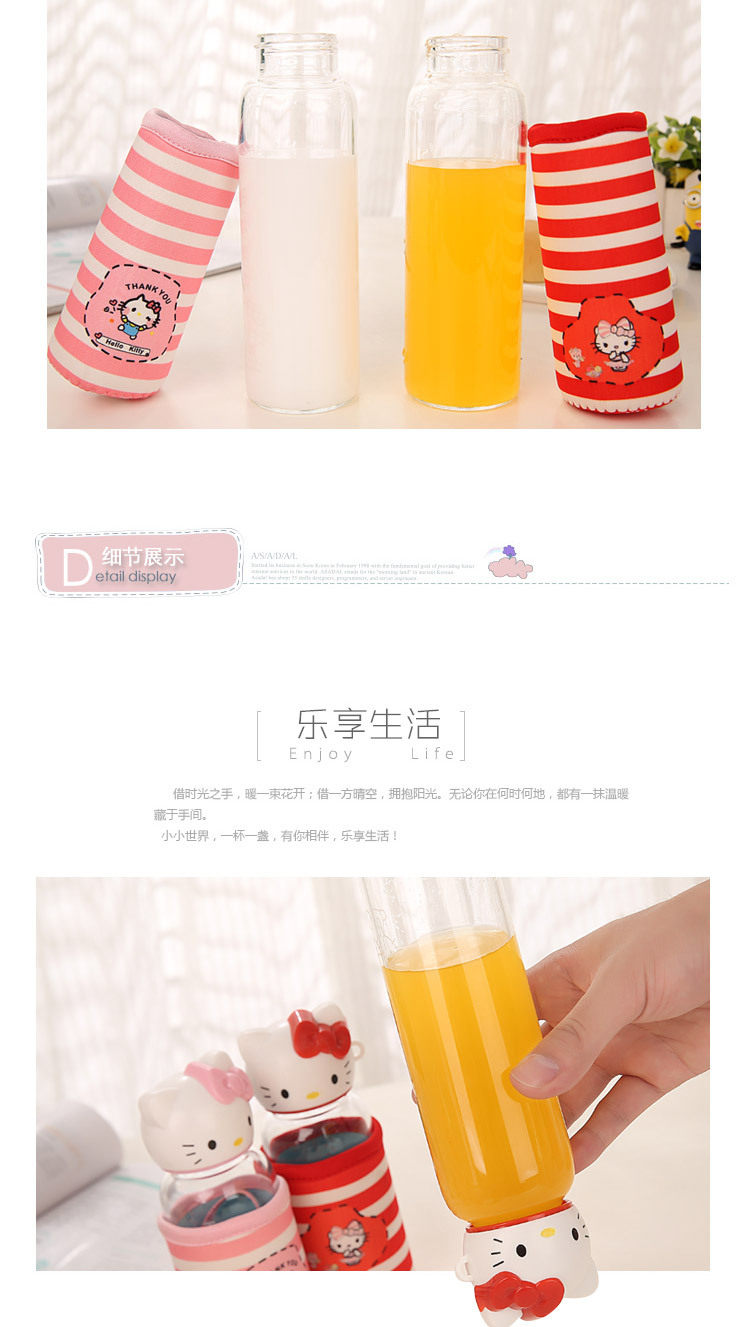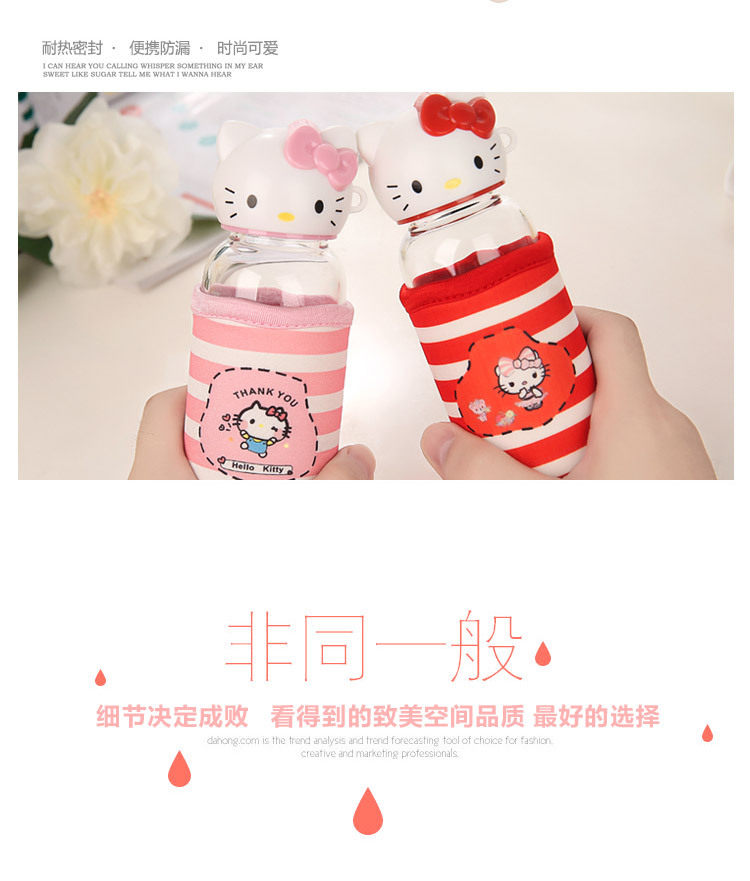 韩国可爱女士透明玻璃杯凯蒂猫学生儿童热水杯创意便携水壶