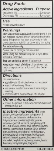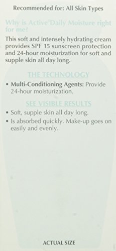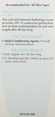 -. Feature : 24-hour moisture resulting in soft, supple skin all day long / Formulated with Pro-Vitamin B5 and multi-conditioning agents suitable for all skin types / Broad spectrum UVA/UVB SPF15 / Dermatologist tested / Net Wt. 4.0 oz.