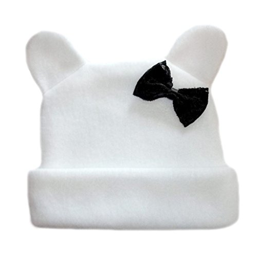 (Jacqui's Preemie Pride)/Accessories/Cold Weather Accessories/DIRECT FROM USA/Jacqui's Baby Girls' White Fleece Hat with Ears and Black Bow