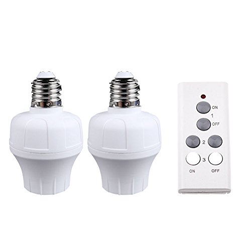 IMtKotW Remote Control Wireless Light Socket, Light Switch for E27 Bulb Base, Energy Saving for Household Appliance, White (1 Remote + 2 Sockets)