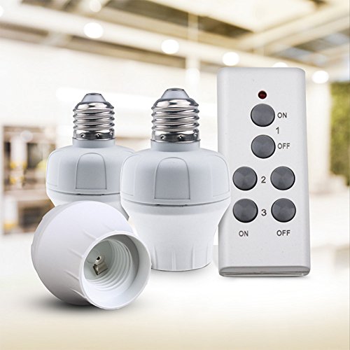 IMtKotW Remote Control Wireless Light Socket, Light Switch for E27 Bulb Base, Energy Saving for Household Appliance, White (1 Remote + 3 Sockets)