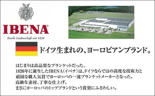 ドイツならではの高度な技術力と頑固な職人気質で、ヨーロッパの一流ブランケットメーカーとなったIBENA(イベナ)社のブランケット。高級な素材を使い、丁寧に仕上げられました。寝具としてお使いいただくのはもちろん、ソファーカバー等マルチカバーやひざ掛けとしてもお使いいただけます♪ |