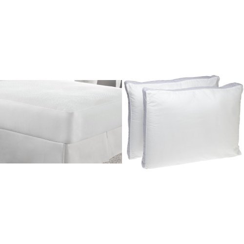 -. Title : Aller-Free Ultimate Comfort Knit Mattress Protector, King, White and Perfect Fit Firm Density Queen Size 233 Thread-Count Quilted Sidewall Pillow 2 Pack, White
