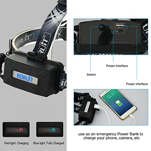 【Waterproof(IPX6) & Heatproof】 -- Prefect for outdoor activities, such as running, hiking, hunting, fishing rain etc, and indoor working light. Package comes with 1x headlamp, 1x wall charger, 1x USB cable, 1x battery package, 2x 18650 batteries.