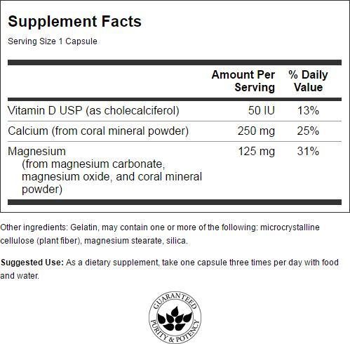 Promote strong bones naturally with Swanson Coral Calcium Complex! This unique mineral formula features the ideal 2:1 ratio of calcium to magnesium, along with 73 trace minerals in a perfect, pH balanced combination made by nature. Because we also care a great deal for the environment, our Coral Calcium is harvested exclusively from above-the-sea sources so no living coral reefs are harmed. Each one-capsule serving delivers 250 mg of calcium and 125 mg of magnesium fortified with 50 IU of vitamin D.Feature