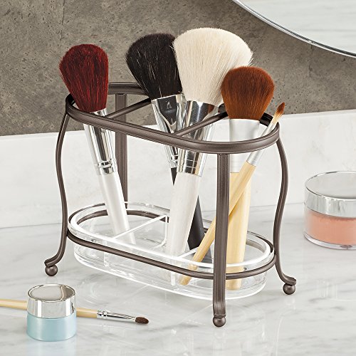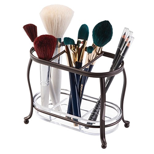 InterDesign York Lyra Vanity Make Up Brush and Comb Organizer, Bronze/Clear