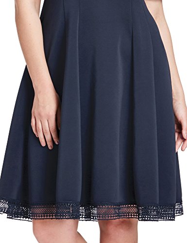 A V-back shows your feminine and the pleated skater skirt drops to a swing, playful, flaring dress. Hidden back zipper. Unlined.