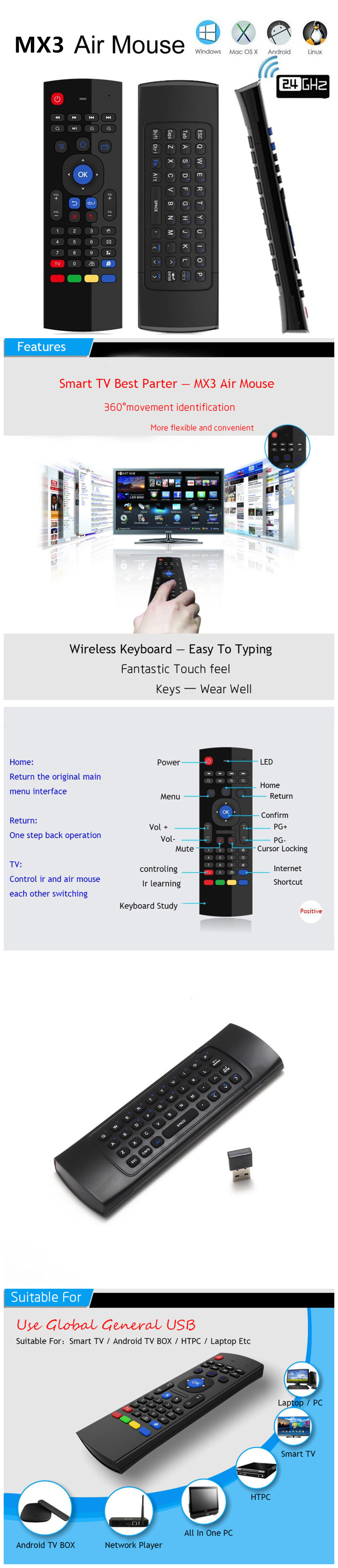Connection: 2.4GHz (Keyboard + Air Mouse), IR (TV Remote Control)