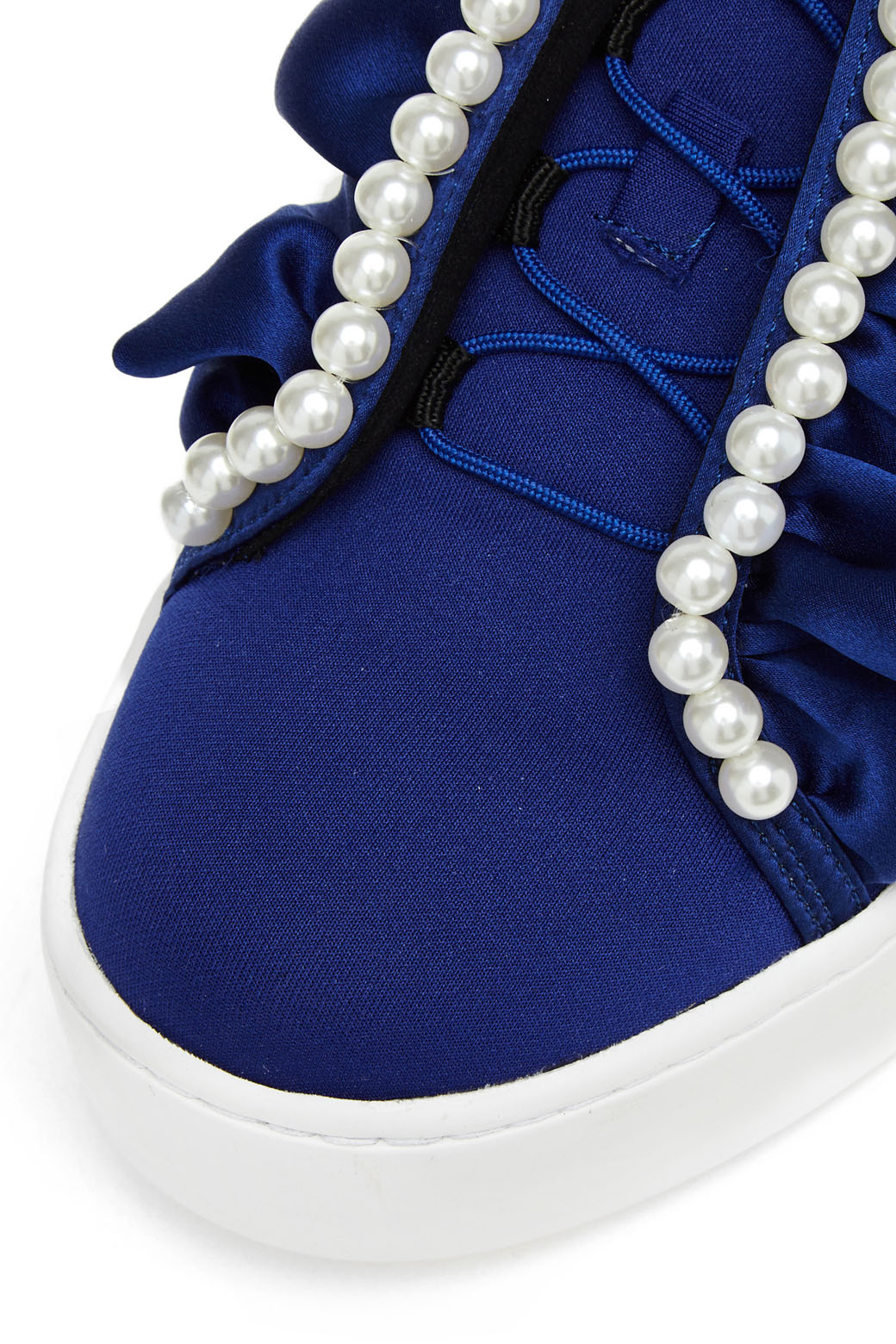 - 볼륨감있는 주름 디테일과 핸드메이드 진주라인으로 포인트를 준 스니커즈.- 네오플렌 소재를 사용하여 부드럽고 편안한 착화감.- 진주 라인으로 페미닌하며 로맨틱 무드의 아이템.- 고무줄 끈을 사용하여 신고 벗기가 간편하고 용이.- 다양한 룩에 웨어러블하게 매칭이 가능하며 심플한 룩에 포인트 주기 좋은 아이템.