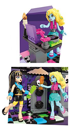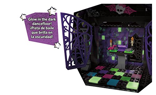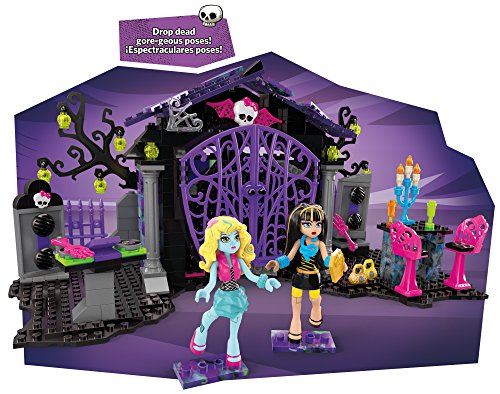 It's a scream at the Graveyard Garden Party by Mega Bloks Monster High and everyone is dying to get in! Build the graveyard, where party VIPs Cleo de Nile and Lagoona Blue are getting ready for the social event of the year. Open the cemetery gates to reveal a killer dance floor with real party lights, tombstones that transform into speakers and a DJ Booth where you can request your favorite tune. Press a button to play three real Monster High songs and make sure to keep the music going so the party never dies! Ideal for ages 6 and up.Feature