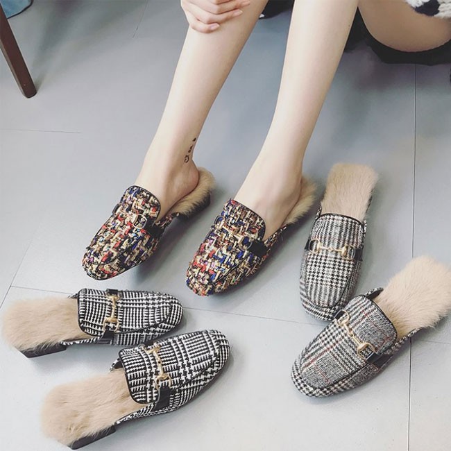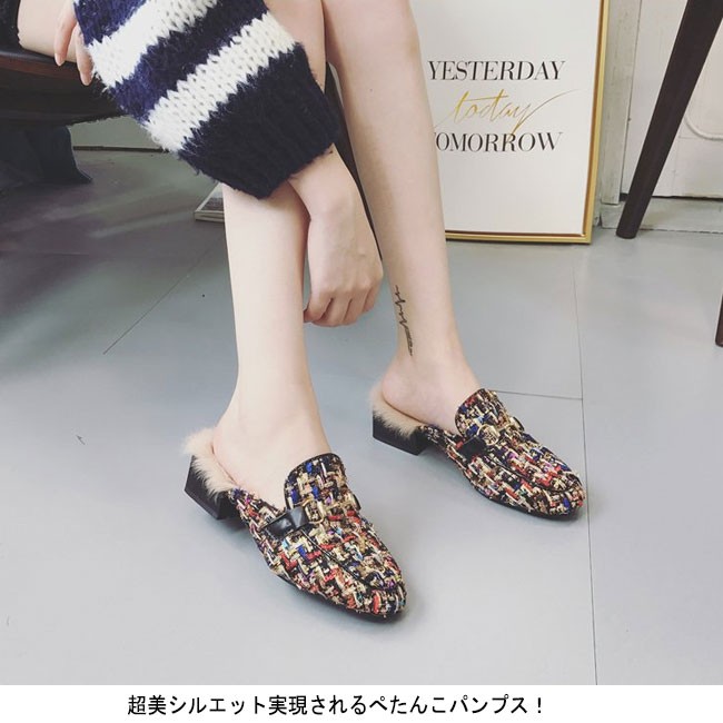 | 商品名 | パンプス ファースリッパ レディース チェック柄 太めヒール フラットシューズ 防寒シューズ もこもこ 秋冬シューズ ファーたっぷり 2018春冬新作 |