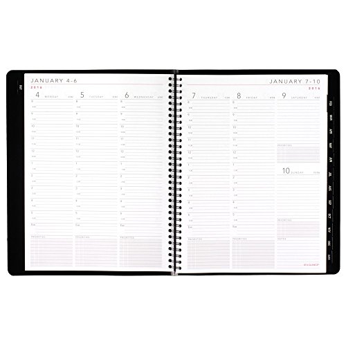 -. Feature : Contemporary weekly / monthly appointment book has a unique cover and modern design. Planner runs 12 months, January - December. / Two page weekly spreads list half-hourly appointment times from 8:00 a.m. and 5:30 p.m. Monday - Friday. Weekends are untimed. / Two page monthly spreads are tabbed for quick page turning. Daily blocks are unruled.
