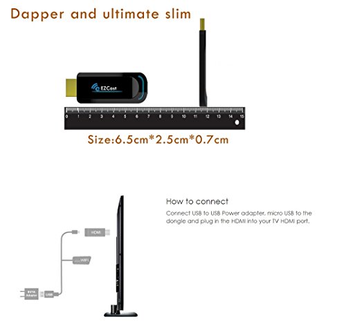 Please follow below steps to install EZCast Dongle: 1. Plug the WiFi cable into EZCast Dongle, and plug EZCast Dongle into your TV (Monitor or Projector) through DHMI Port