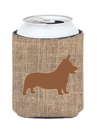 Corgi Burlap and Brown Can or Bottle Beverage Insulator Hugger BB1069