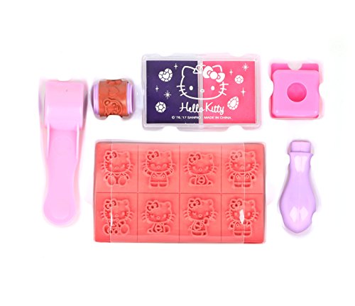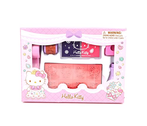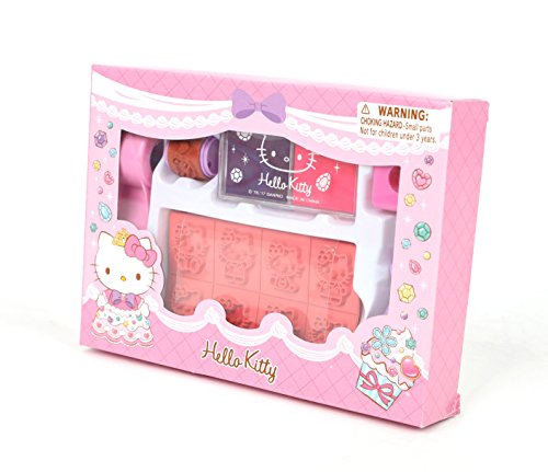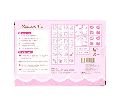 Young artists will have fun creating cards or art projects with this adorable Hello Kitty stamper kit! Cute designs featuring Hello Kitty, her pet bear, bows, birds, and fun sayings like "Love" and "Smile." Recommended for Ages 5 years and up. Conforms to ASTM-D 4236 safety standards. Non-toxic.Feature