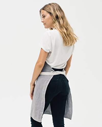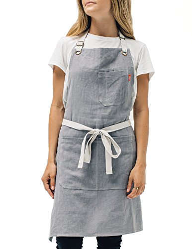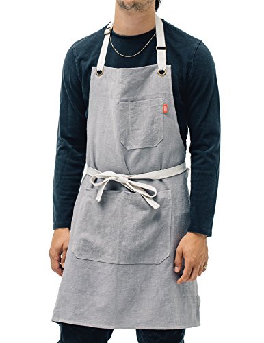 Linen Kitchen Apron by Abbot Fjord - Mens and Womens Linen Bib Apron - Adjustable with Pockets - Inspired by Professional Chefs (Grey)
