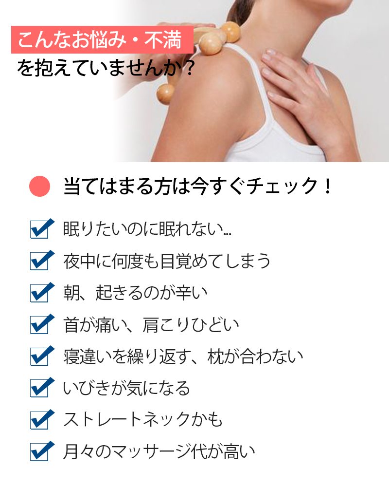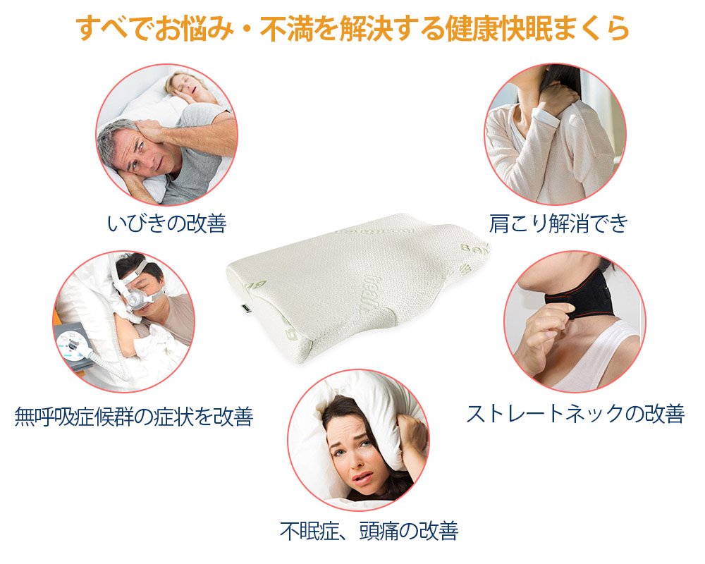 Various effects: prevention of snoring, comfortable sleep, prevention of apnea syndrome, countermeasure against stiff neck, low back pain, heal the body fatigue