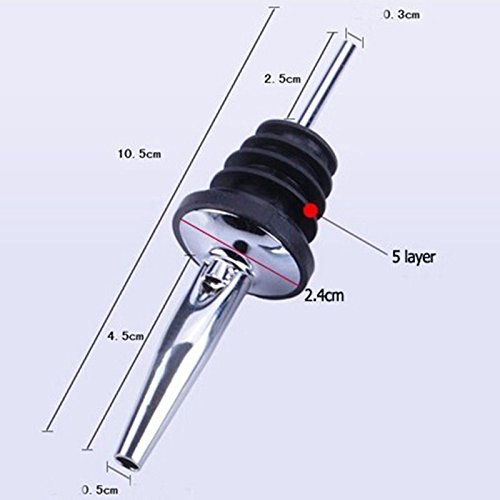 - One Olive Oil Liquor Wine Free Flow Bottle Pourer Dispenser Spout Stainless Steel designed after the Popular Spill-StopTM 285-50^Superior Food Grade Poly Plastic Finned Softer Cork for Better Bottle Fit.^Fast or Medium Free Flow Speed for Professional Use with Tapered End That Provides The Perfect Flow Count.^Pours Liquor