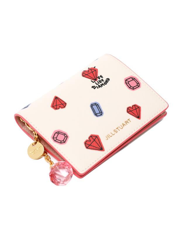질 스튜어트 하트 다이아몬드 패턴으로 귀여운 느낌을 주는 반지갑입니다.쁘띠 다이아몬드 패턴과, 보석 참이 포인트인 한 손에 들어오는 컴팩트한 사이즈와 휴대가 간편하고, 넉넉한 수납공간으로 실용적인 반지갑입니다.