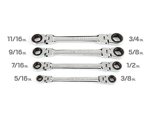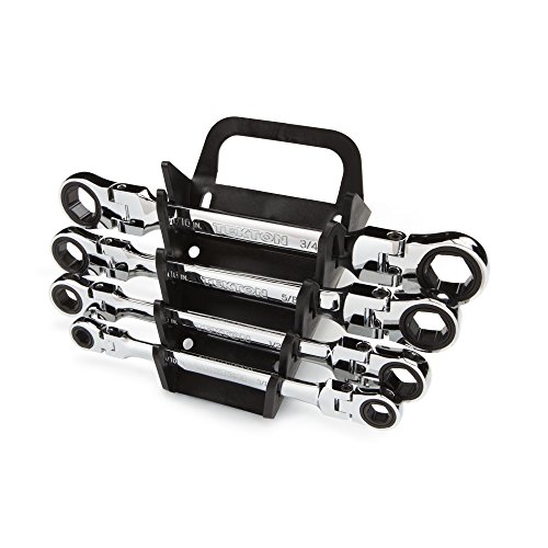 TEKTON WRN76062 Flex-Head Ratcheting Box End Wrench Set with Store and Go Keeper, Inch, 5/16-Inch - 3/4-Inch, 4-Piece
