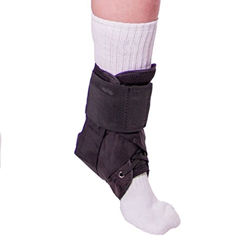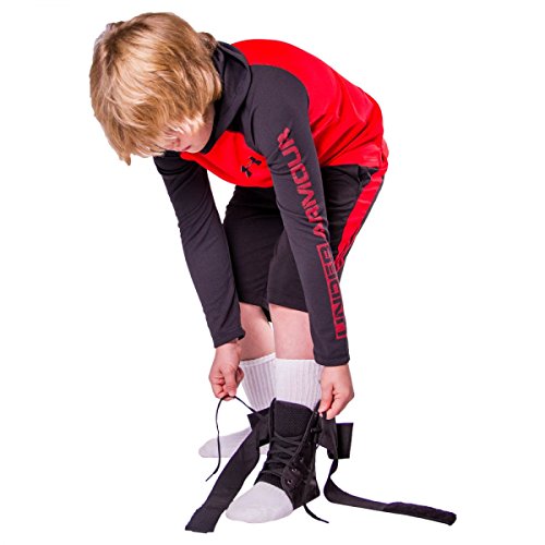 -. Feature : Provides lightweight support and protection to the injured ankle / Lace-up design makes it easy for children to secure and adjust / Composed of durable, non-stretch ballistic nylon that will stand up to impact and wear / Helps to treat ankle sprains and strains, general ankle pain, ankle instability, ankle swelling, and to prevent future injuries or re-injury from occurring / Measure the circumference from the base of your heel over and around the top of your foot. Available in sizes 2XS-S.