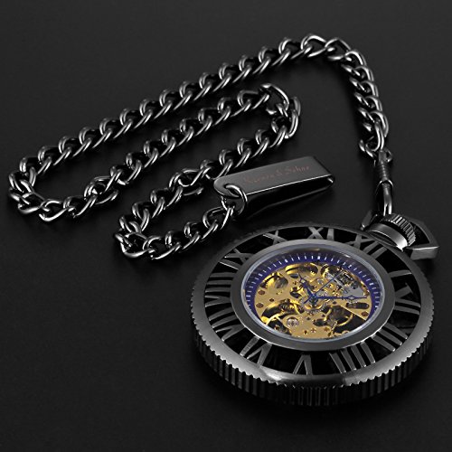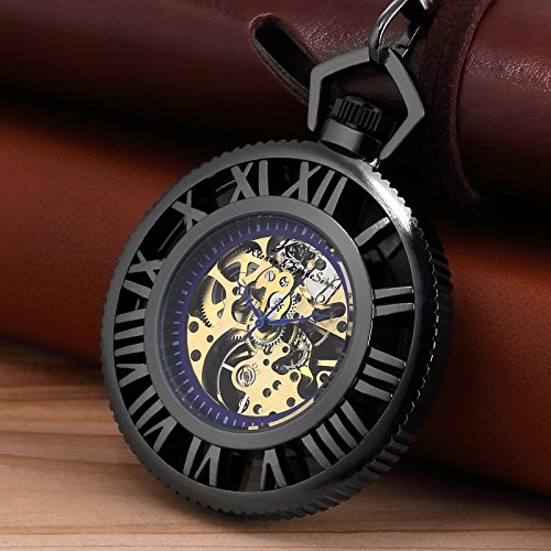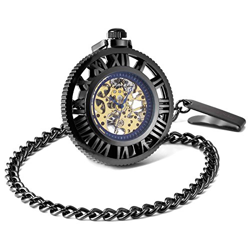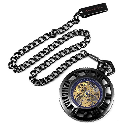 [K 에스]KS 회중 시계 태엽 기계식 스켈리턴 《호로》 로마 숫자 블랙 기어 디자인 KSP069