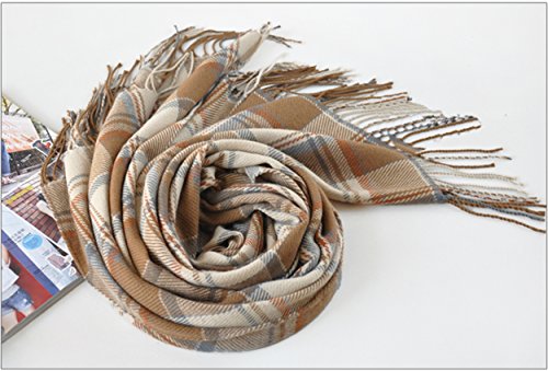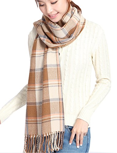 Title : Wander Agio Women's Fashion Long Shawl Big Grid Winter Warm Large Scarf Beige Plaid